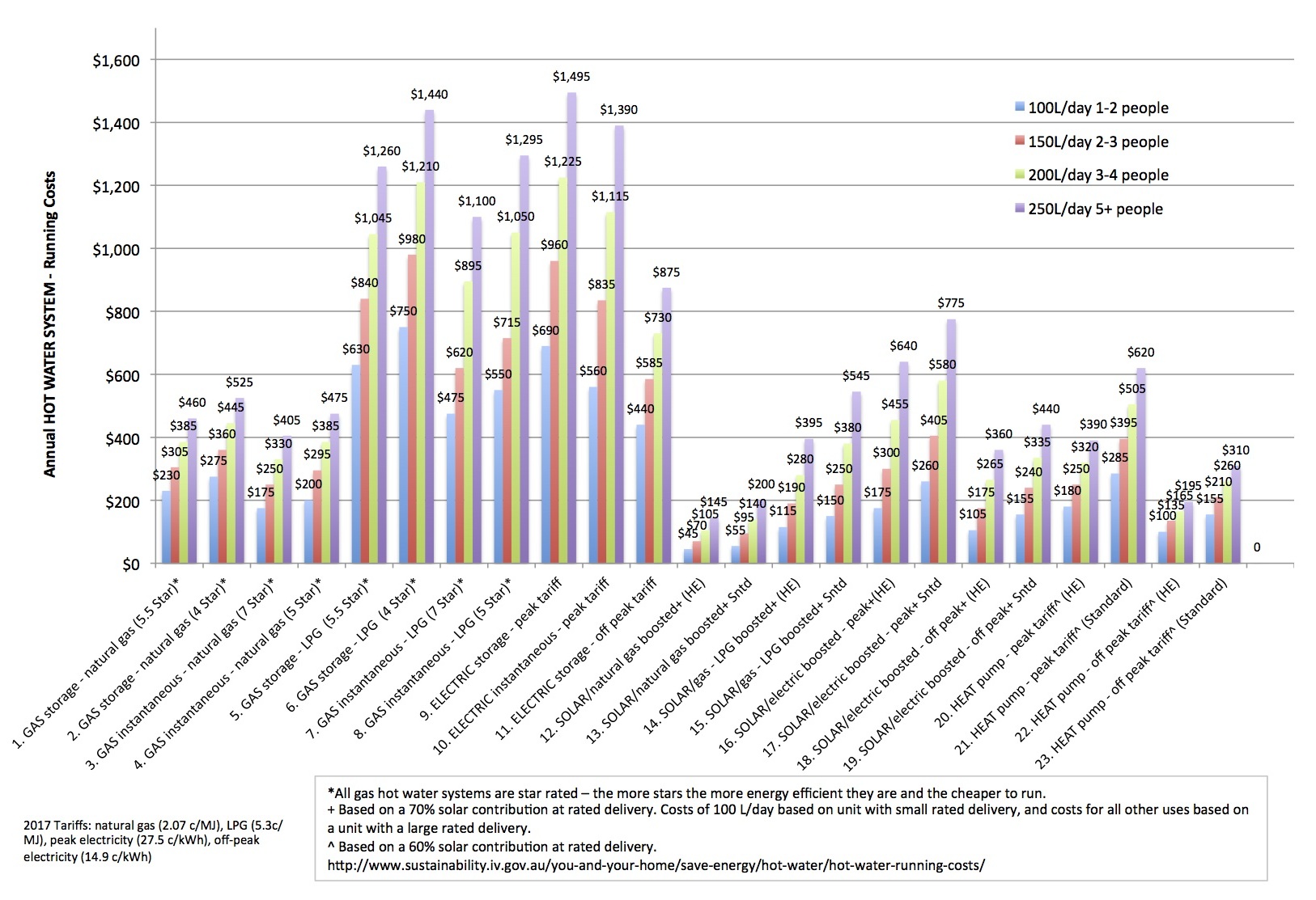 Hot Water Systems – Annual Running Costs 2017